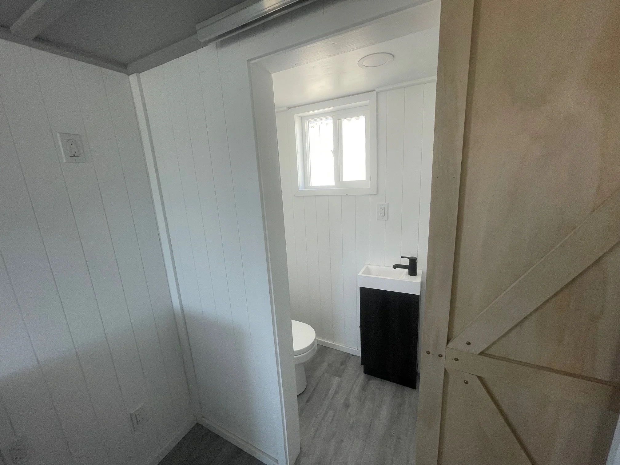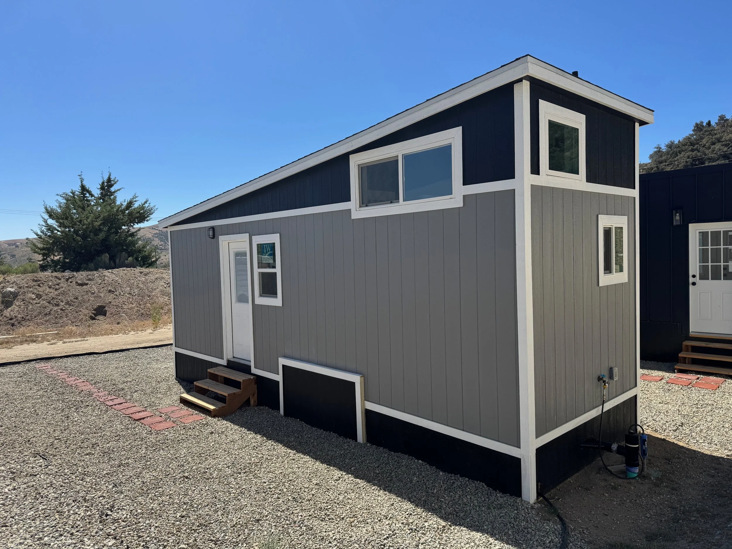 The most spacious of the three, this shed-roofed Tiny, sports two lofts and a pull out couch. Plenty of space for team off-road. AC/Heat , hot water, TV and cooktop.